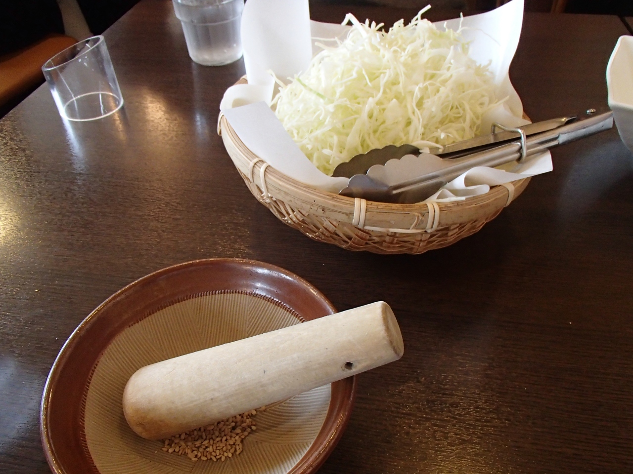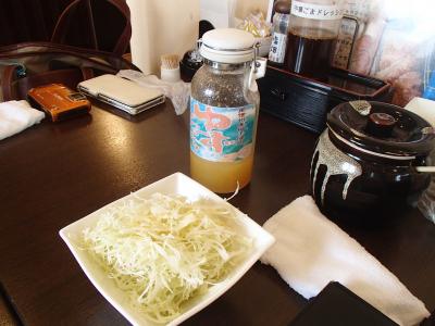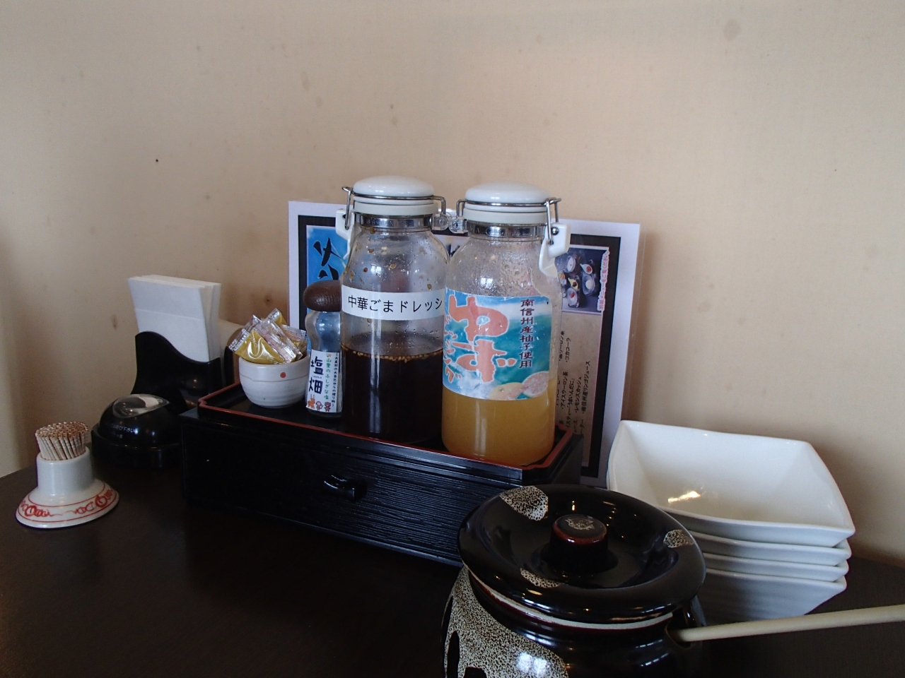 きゃべつが食べ放題ですが、このキャベツに付けるドレッシングが充実しています。その一つ、中華ゴマドレッシングとゆずドレッシングですね。
