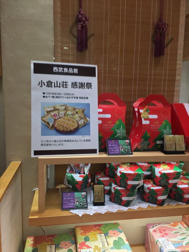 小倉山のおせんべいは、お歳暮の時期に喜ばれるお菓子です。包装も原色を使って、目立つ色使いで、特に、京都らしい雰囲気を醸し出しています。また、ぜひ、一度、小倉山のおせんべいの購入を検討してみてください。