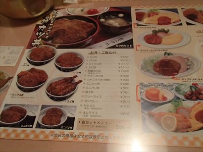 かつ丼が有名ですが、それ以外にもチキンカツ丼や、オムレツ、カツカレー等、様々な洋食が用意されています。
