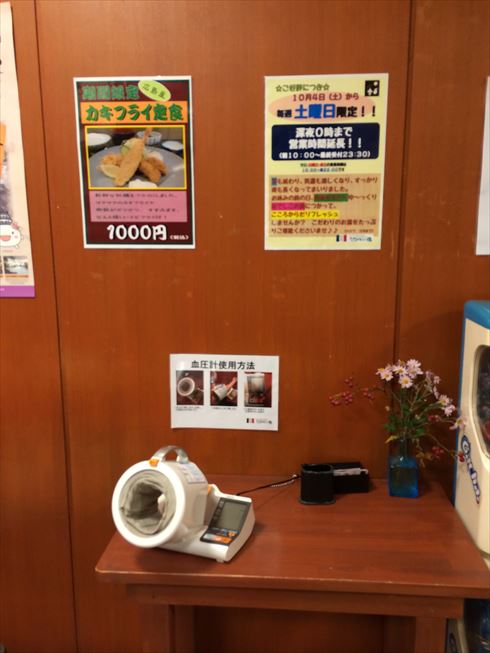 健康を意識した黒酢や血圧計も有ってそんな場所です。温泉に入った後に体のケアをしてみては、ぜひ