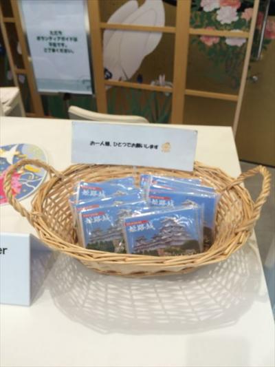 姫路城の写真の入ったテッシュを配っているので、来場記念としてみては、数に限りが有るようですが、早めに行ってもらってみてください。