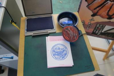 スタンプが置いて有って、デザイン画は、トテモシンプルですが、寺院をイメージしたものとなっています。
