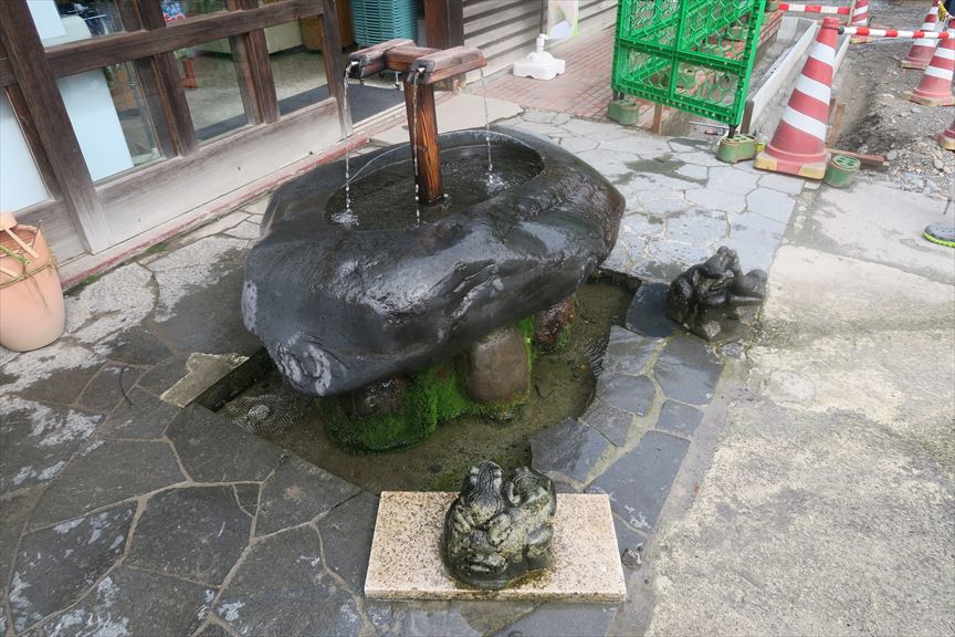 大王わさび農場では、名水100選に認定されている湧水を飲む事ができます。蛇口から飲む事ができます。また、水かけ親子がえるも有って、水をかけて、無事カエル、若ガエルを祈願してみては、ぜひ、一度、行ってみてください。