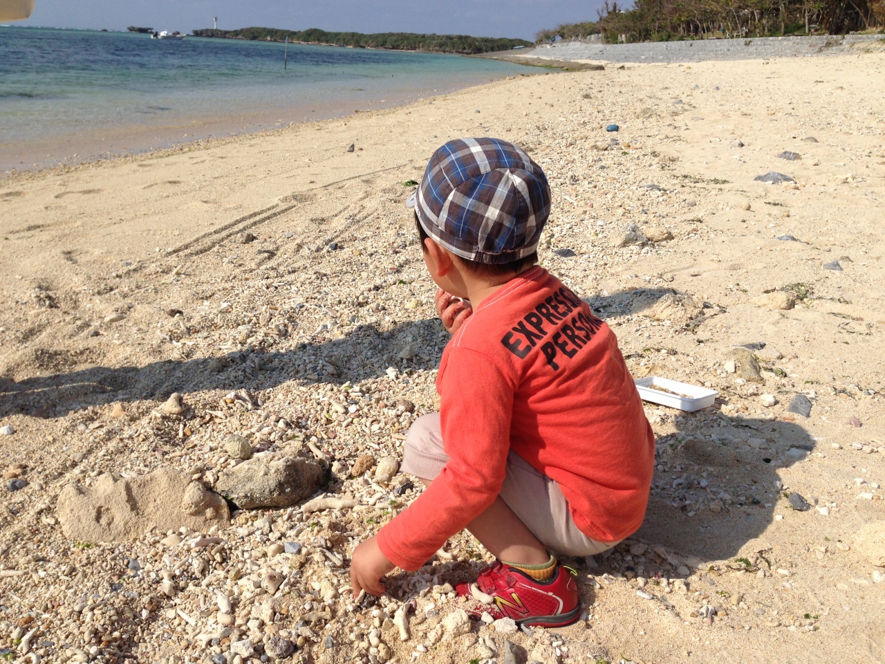 貝がらやサンゴの死骸の白い石などがたくさん落ちていて、息子と拾って遊びました。