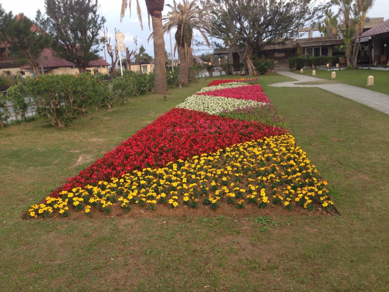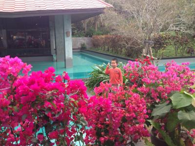 遠いだけあってとにかく庭が広くて南国っぽい花や木が楽しませてくれます。部屋はシックな印象でとても清潔感がありました。