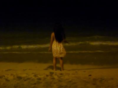 食事の後、浜辺に出て、見知らぬ女の子としばらく波の追いかけっこをして遊...