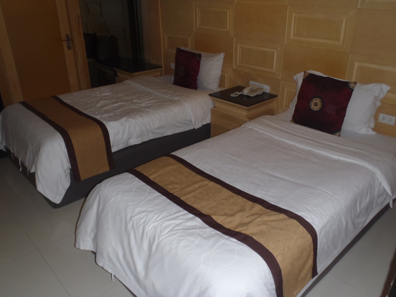 平成27年4月下旬に2泊しました。このホテルは、マンダレー鉄道駅の西側に位置します。マンダレーは、碁盤のように南北、東西に番号のついた通りがあり、空港からタクシーの運転手に住所を伝えるときっちり連れて行ってくれました。部屋ですが、まず新しさを感じました。ツインのベッドはほどよい大きさ、クッションも快適でした。バスルームはいたって普通。シャワーのお湯はでました。部屋は広いです。フロントの女性たちはニコニコ応対してくれ、嬉しかったです。ただ難点は、騒音。ホテルの外から、マイクでなにかしゃべる声がかなりの時間聞こえてきます。朝ごはんはビュフェでおいしかったです。わりとお手ごろ価格、部屋がきれい、フロントはニコニコ親切といった点で、マンダレーのおすすめ宿です。