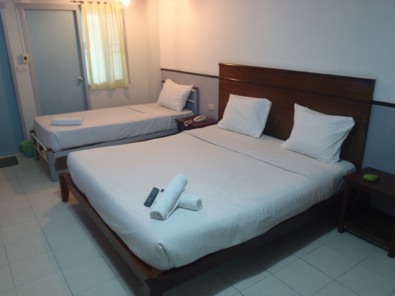 2016年の正月に2泊しました。場所は、サードロード沿い。サードロードとパタヤカンロードの交差点から南へ徒歩3分です。部屋は、ツイン部屋を選択。角部屋でしたので、南側西側に窓がありました。部屋には金庫があります。バスルームは、洗面台、トイレとシャワーの仕切りなし。フロントの前には、ホテル専属プールがあります。周辺ですが、歩いて5分でビッグCに行けます。サードロード沿い、パタヤカンロード沿いの飲食店、屋台も徒歩圏内です。散髪屋も歩いて1分のところにありました。リーズナブルプライスで全体的に特に悪くもないという印象でした。