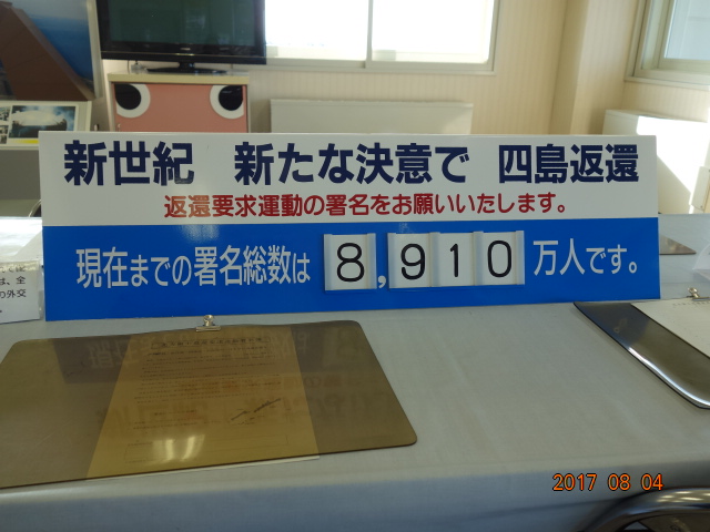 北方館では、返還運動の署名を行ってました。私、もちろん署名しましたが、返せ返せと口だけでは帰ってこないのが国際政治です。