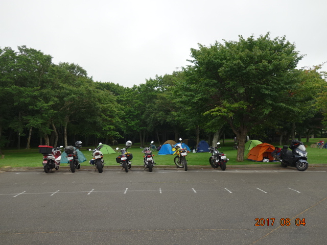 納沙布岬を出発し、約1時間半ほど運転。到着したのは、暗くなる寸前の19時頃でした。車の駐車場のスペースは、止まっていたのは6~7台と記憶しています。ツーリングライダーは、10名くらいでしたでしょうか。まあまあの込み具合という感じでした。ここは、無料で、しかも景色が良いので人気のキャンプ場と思いました。風が強かったのですが、テントサイトはしっかりペグがささり、飛ばされることはありませんでした。虫は、ありがたいことに少なかったです。山の上の別方向に、ゆうゆの湯があります。近いです。前日のキャンプ場は門限があり、温泉に入れなかったので、2日ぶりの温泉となりました。ということで、ここは門限がありません。それから、山の麓にはセイコマート(コンビニ)があります。車で5分くらいだったと思います。翌朝、霧多布の海を眺めました。たくさんの昆布漁の船を見ることができました。普段見ることのない景色なので、ラッキーと思いました。コンビニが近く、温泉も近い、眺めがよい、タダということで、このキャンプ場はおすすめです。