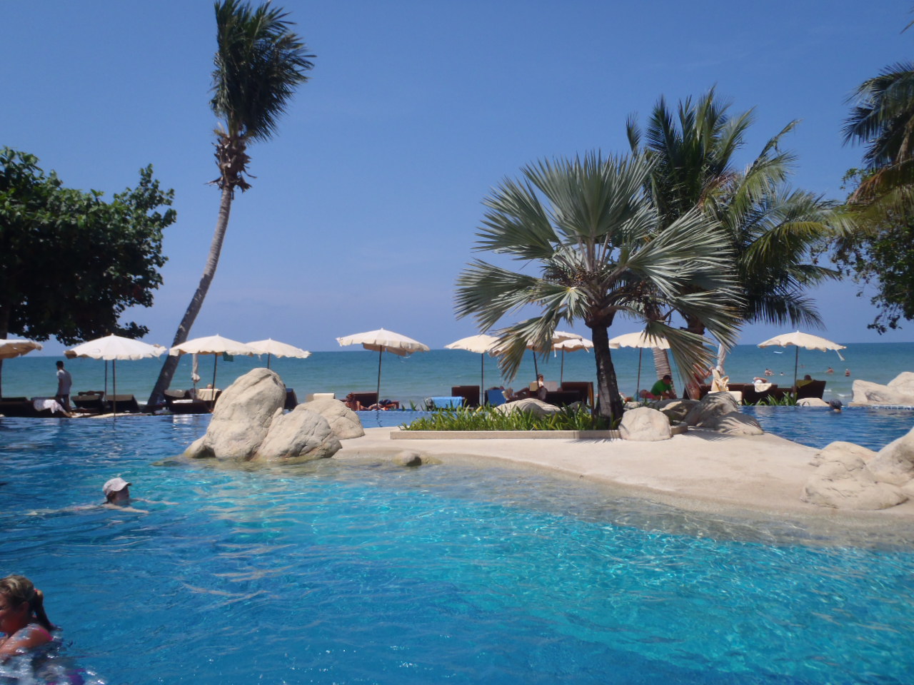 7月に3泊しました。場所は、チャウエンビーチ通り沿いの便利なところにあります。フェリーが着くナトンピアからソンテウに乗り、このホテルに行ってくれというと目の前で降ろしてくれました。このホテルの宿泊は、ビルディングとバンガローの2パターンです。我々は、ビルディングタイプ。フロントからそう遠くはありません。部屋は、お風呂はなくシャワーのみですが、綺麗です。やはり高級なホテルなので、我々以外はヨーローパの家族連れ、年配ご夫婦オンリー。そう騒がしくもなく静かに過ごすことができました。ホテルのフロントではバイクを格安で借りることができラッキーでした。プールも充実しています。浜辺にでるとチャウエンビーチが一望。優雅に過ごすことができました。日本レストラン富士が歩いて5分のところにあり、タイ料理に飽きてきた我々にとってはラッキーでした。