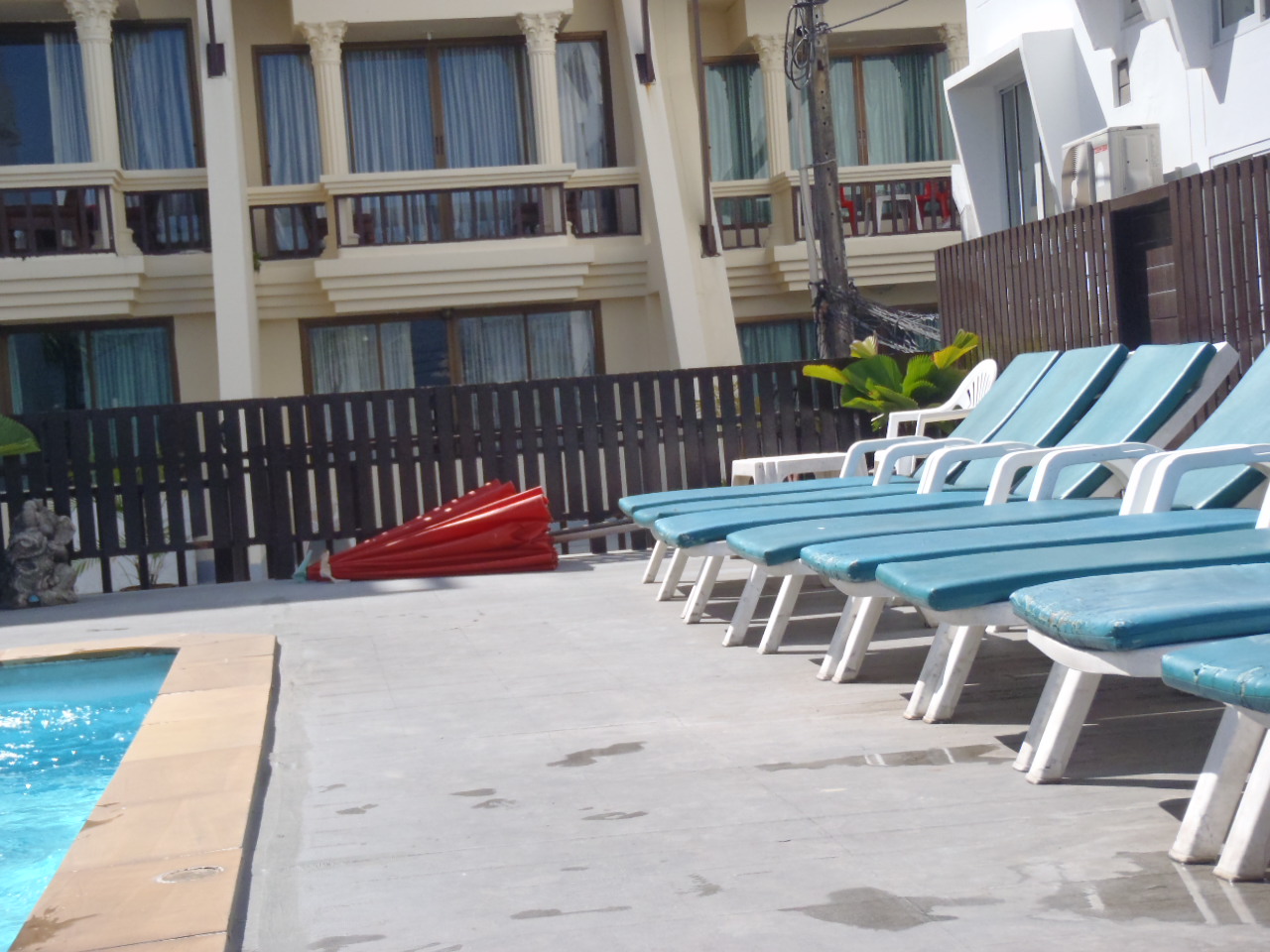 11月に3泊しました。場所は、ロイヤルガーデンプラザのすぐ南にあります。泊まった部屋は3F。騒音がなく静かに過ごすことが出来ました。部屋は広く十分な大きさ。バスタブはなく、シャワーのみ。金庫があるのでありがたかったです。冷蔵庫もあります。洗面にはドライヤーがありました。バルコニーがあり、くつろぐこともできました。ただし、前は建物でビーチは見えません。フロントの男性は、少し日本語でしゃべりかけてくれたりして、とてもフレンドリーな感じがしました。セブンイレブンに行くには歩いて5分ほどかかります。7Fにはプールがあります。そこからのパタヤビーチの眺めはなかなかのものです。レストランの朝食は種類が多く、3日間全く飽きませんでした。セカンドロードへも歩いて5分、そこから北側行きソンテオを捕まえることができます。便利な場所で、人がいっぱいの繁華街の中という感じが好きな方にはお勧め。