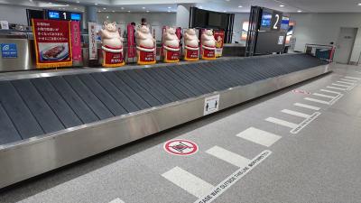 10月上旬の、21時頃に到着の便を降りた後、中部国際空港を利用しました。飛行機を降りた後、荷物受け取りレーン設置場所までの間にも、動く歩道が広範囲に渡り設置されており、比較的快適に移動できました。なお、荷物受け取りレーン脇に、地元の著名なとんかつ店のキャラクターの豚が設置されており、それが、緩さの点でも、ローカル色を感じさせる点でも、印象的でした。