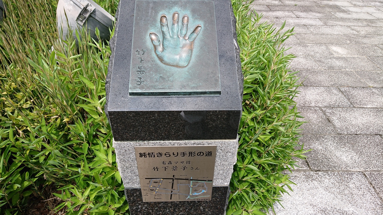 純情きらり手形のみちとは、岡崎市内で多くのロケが行われた、過去に放映されたテレビドラマ出演者の手形の野外展示です。一か所にまとめられているのではなく、ある程度の地域内に、10人分の手形が展示してありますので、散策しつつ見つけていくという楽しみもあると思いました。