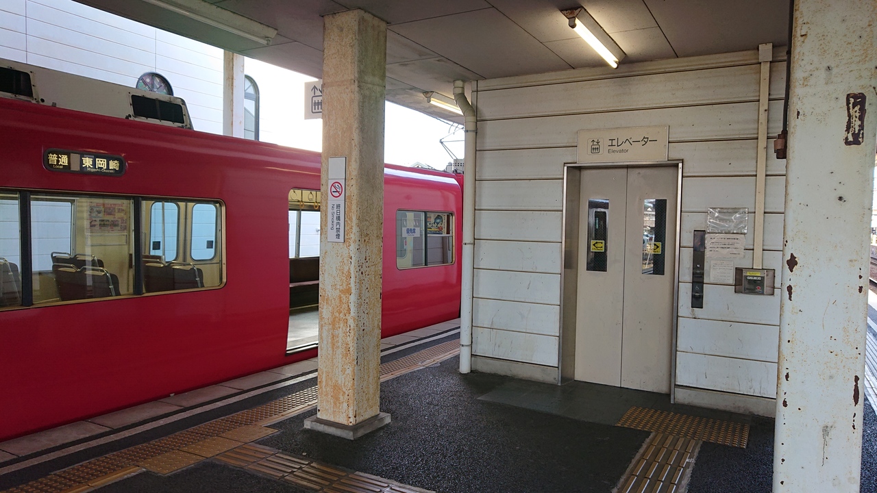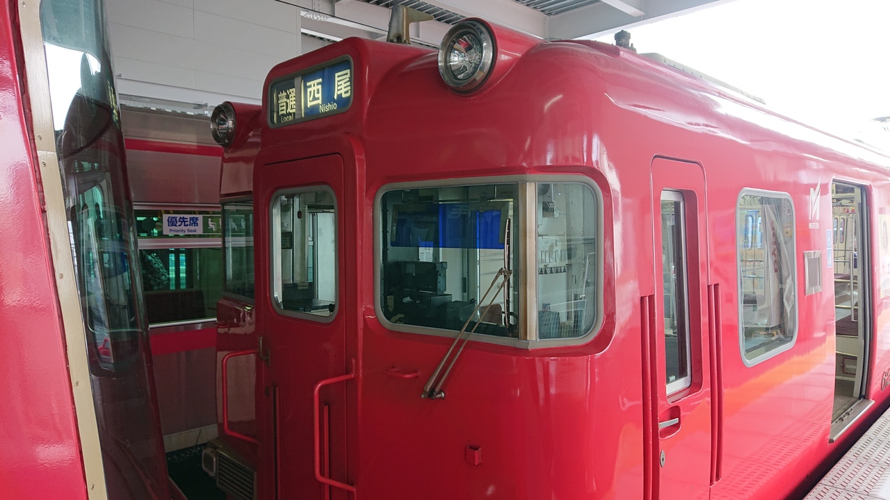 ゴールデンウイークの日中に、豊明駅から、普通列車を東岡崎行を利用しました。休日ダイヤの日中であっても、東岡崎方面への普通列車は、毎時4本設定されており、利便性が確保されていると感じました。乗車した車両は、固定式のセミクロスシート車でした。