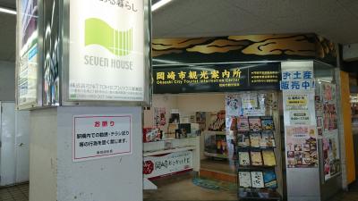 再開発が予定されている、東岡崎駅ビルに立地の観光案内所です。同じビルの上層で長年営業されてきた、岡ビル百貨店が2021年5月末をもって閉店するそうですが、こちらの案内所は、現在の所、スグに閉鎖されるということでは無いようで、特に掲示などはありませんでした。乙川で開催されるイベントのチラシをいただきました。ありがとうございました。