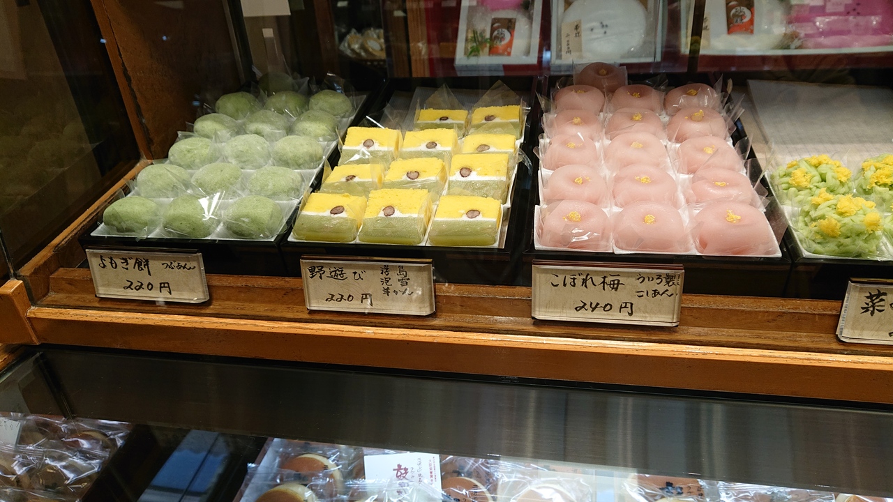 JR安城駅至近に立地する和菓子屋さんです。和菓子数点を購入しました。今回特に印象に残ったのは、生菓子の、野遊び。まず、黄色、白、黄緑色の、。色彩が、春らしい鮮やかさで素敵でした。味は、羊羹部分がメインで、それに、淡雪と浮島が良いアクセントとなっている感じでした。