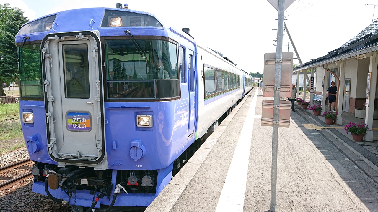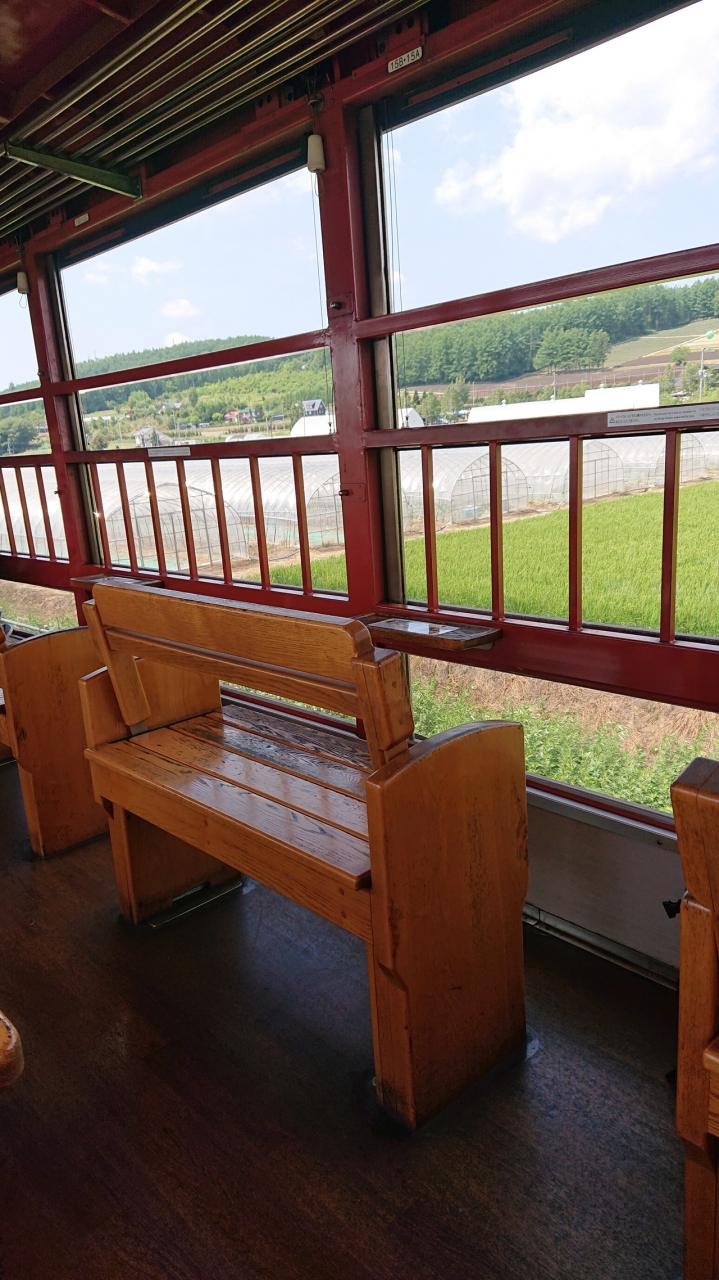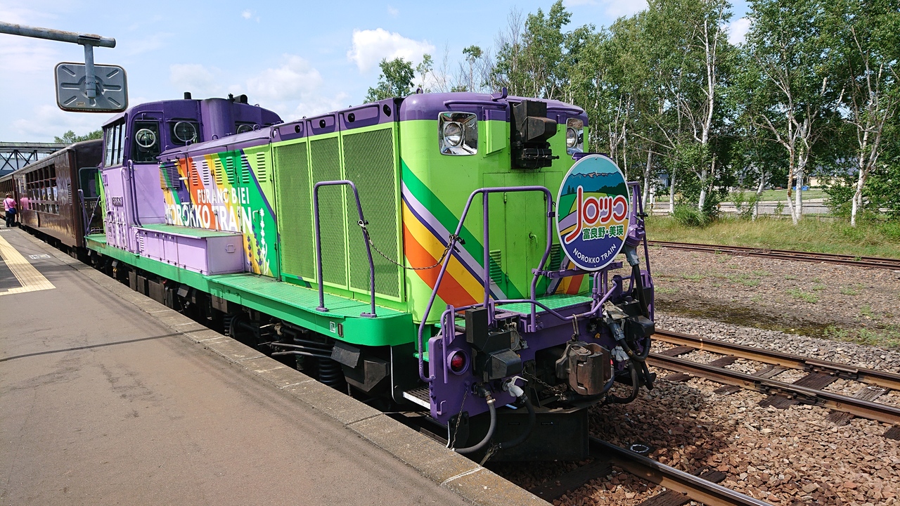 夏季を中心に、JR富良野線で運行される、臨時列車です。訪問時は、旭川・富良野の間で1往復、富良野・美瑛の間で2往復が運行されていました。車両は客車です。座席は、6人掛けのボックスシートと、線路と平行に設置されている、2人掛けのベンチシートです。景色の良い所では、減速運転するサービスが行われていました。また、入り込む風が爽やかでした。