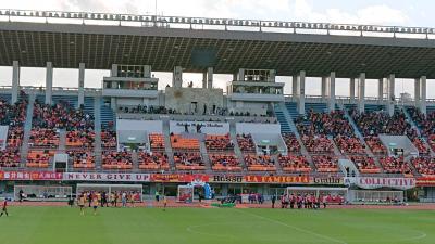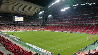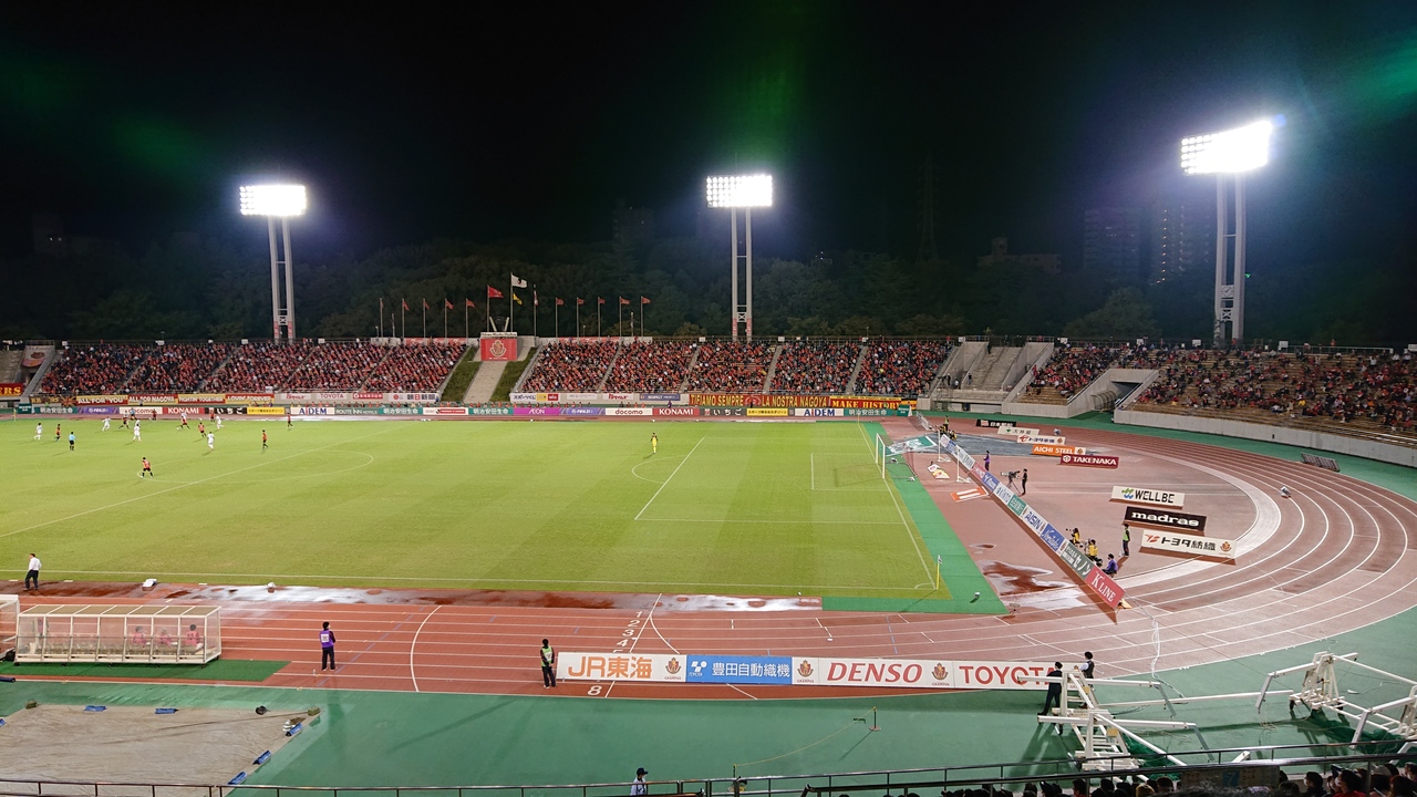 Jリーグの、名古屋対FC東京を、南サイドスタンドから観戦しました。南サイドスタンドといっても、かなりメインスタンド寄りでしたので、近い側のコーナーキックがとてもよく観えました。また、球技専用スタジアムならではの、臨場感も感じられました。