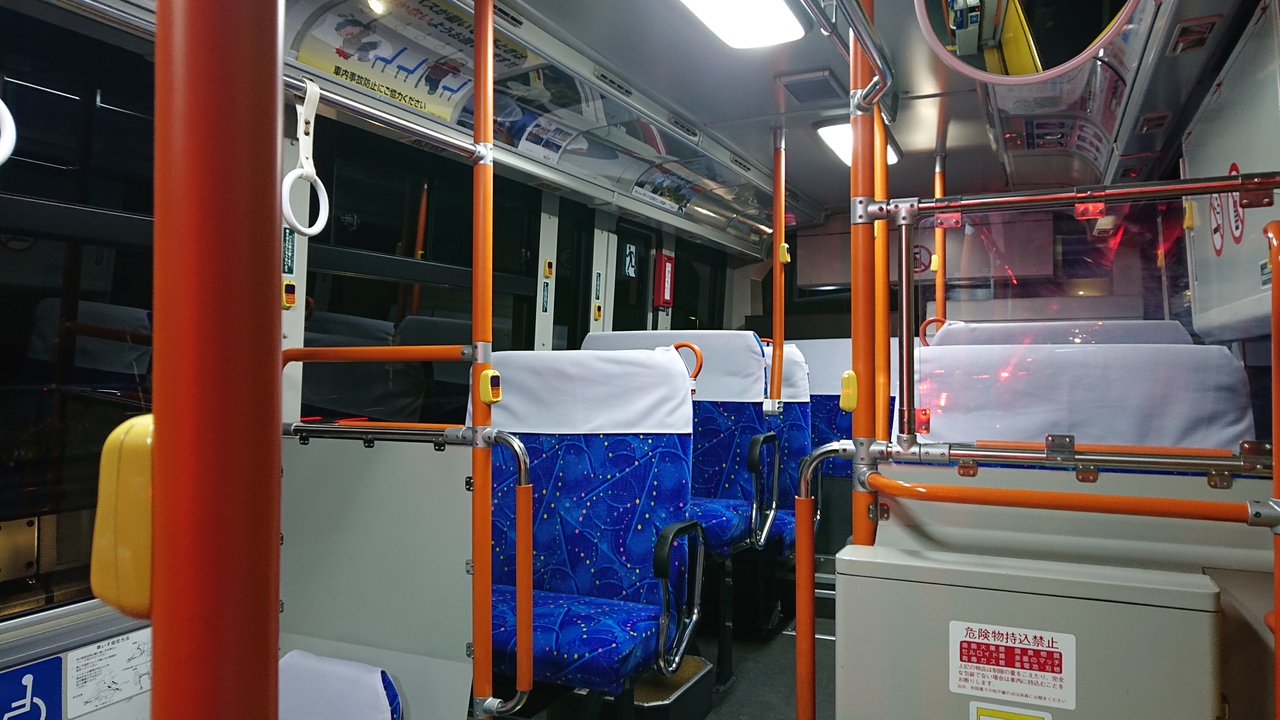 平日の17時台に、岡崎公園でのイルミネーションを鑑賞するため、岡崎公園前バス停まで利用しました。名鉄名古屋本線の岡崎公園前駅とは全く別の場所の、岡崎公園の家康館に近い側にあるバス停ですので、今回の目的には適していましたが、注意が必要です。空いていたので、余裕をもって座れたので快適でした。