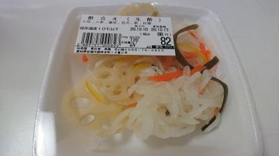今回は、栄養のバランスが取れるような総菜が欲しくて訪問した。店舗奥のショーケースから、実際に購入したのは、酢合え。大根、れんこん、ニンジン、こんぶ、ゆず、が用いられており、それが酢で和えてあるもの。酢の酸味、ゆずが良いアクセントになっていました。酢が苦手でなければ全然おいしく食べられる品物だと思いました。