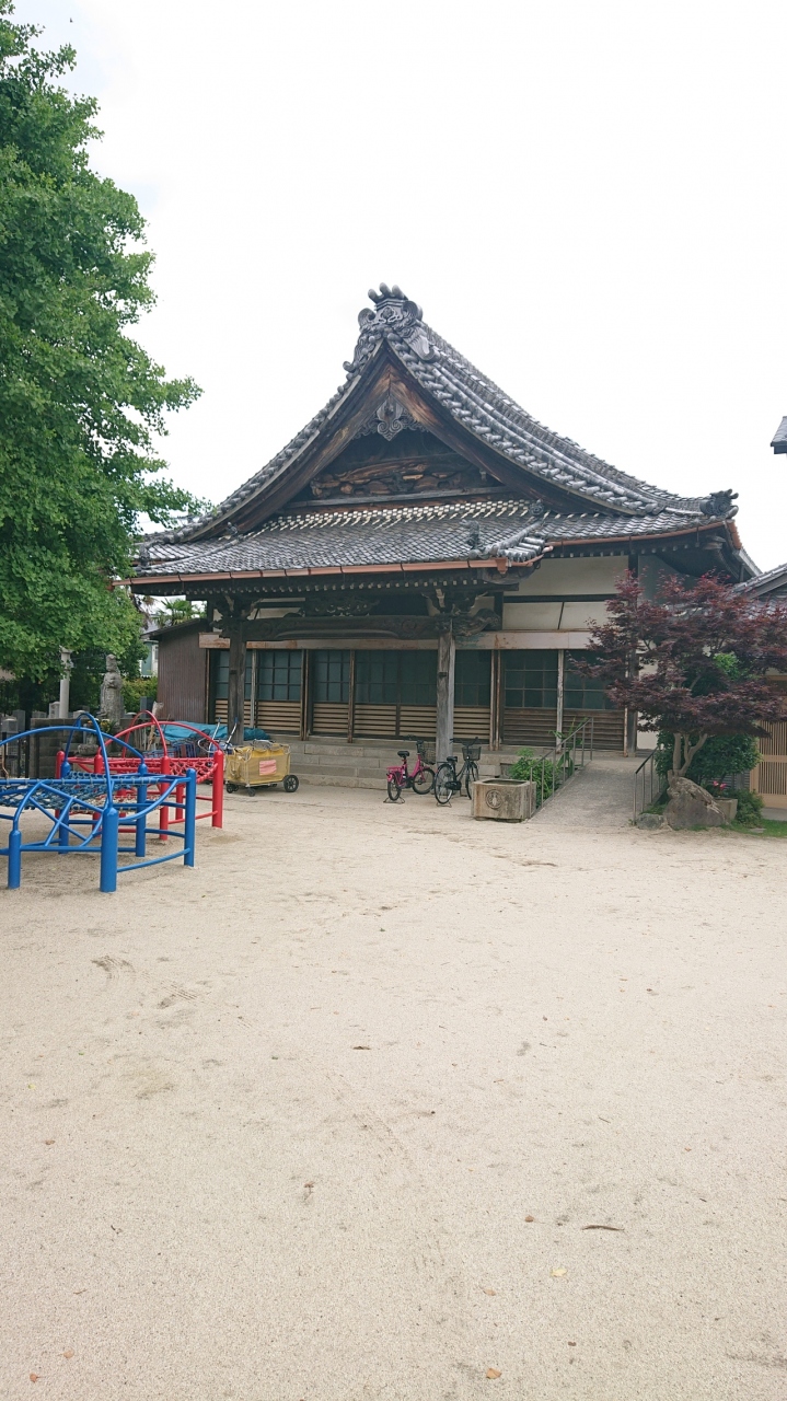 矢作橋駅近くにあるお寺お寺です。駅からは、国道1号線を超えなければいけませんが、距離としては近いです。境内は保育園の園庭も兼ねているため、遊具が設置されていました。休日の日中で、門が解放されていれば、境内に立ち寄ることも可能です。