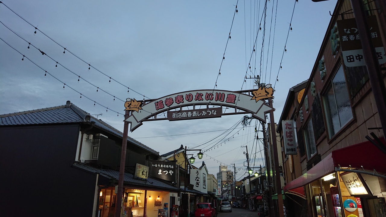 豊橋駅近くのアーケードです。アーケードの屋根は曲線的になっており、おしゃれだなと感じました。訪問した実感としては、人通りは多くもなく少なくも無いといった印象を受けました。また、結構古くからのお店も軒を連ねているという印象も受けました。