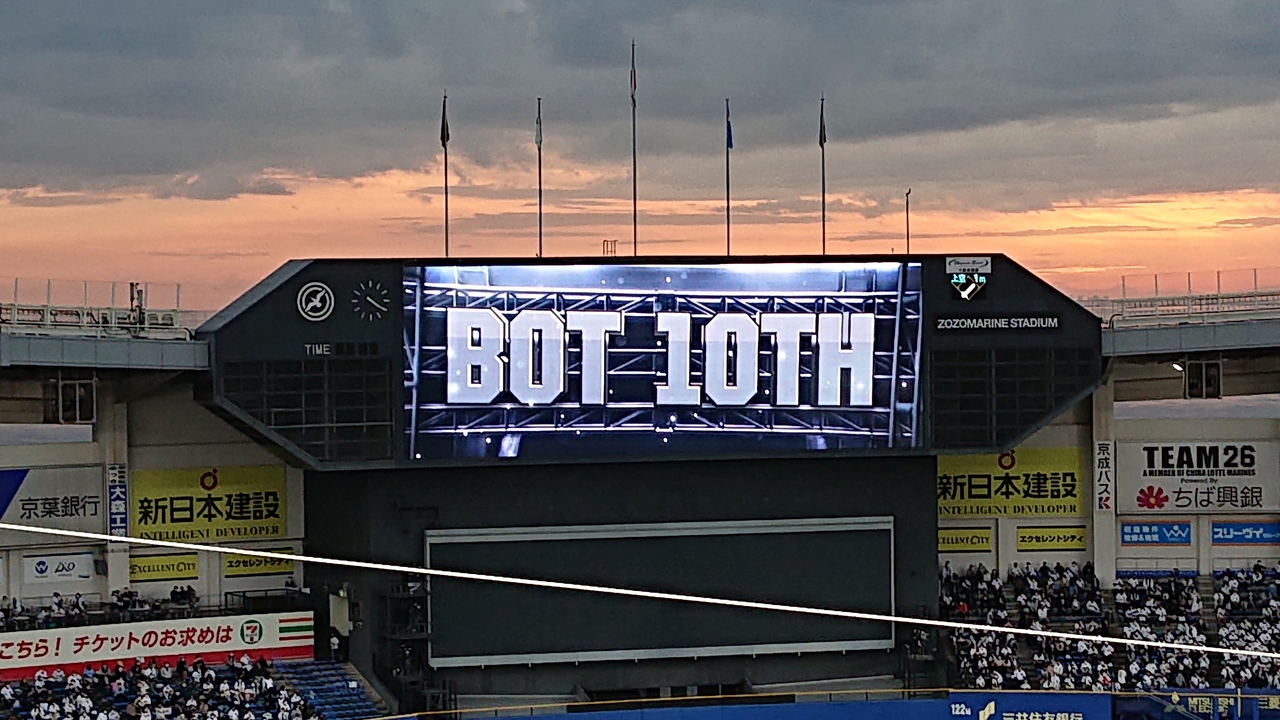 2021年11月に、プロ野球ロッテ対楽天の、延長戦へともつれた試合を観戦しました。席種は、内野B指定席。座席位置は、ネット裏よりやや三塁側フロア4の、409通路49列。遠くて見づらいかな、と思いきや予想外に見易い席でした。ZOZOマリンスタジアムは、プロ野球の本拠地としてはややキャパシティーが小さいですが、その分、上段席でも見やすいと、実感しました。