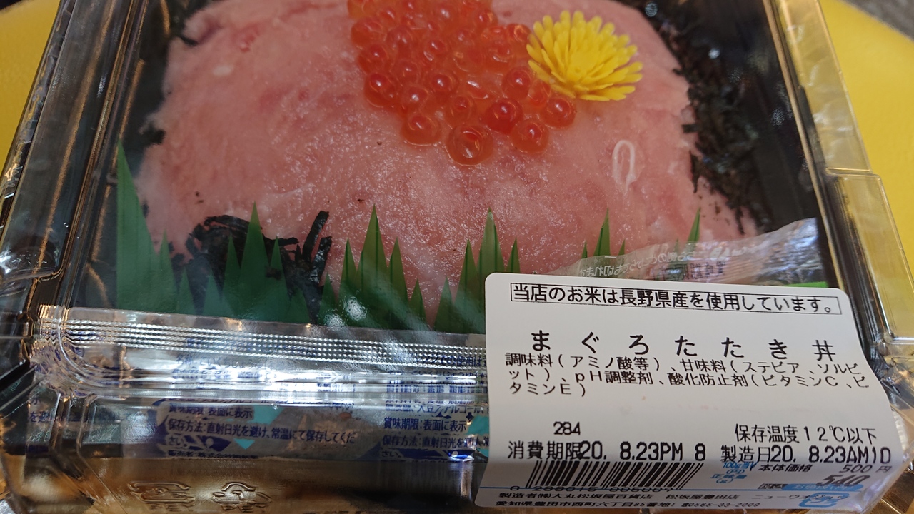 松坂屋豊田店内に立地のテイクアウトのお寿司屋さんです。一階の、中央よりやや愛知環状線の駅寄りの場所です。今回は、まぐろたたき丼をテイクアウトしました。ごはんが、結構しっかり入っており、ボリューム満点で満足でした。
