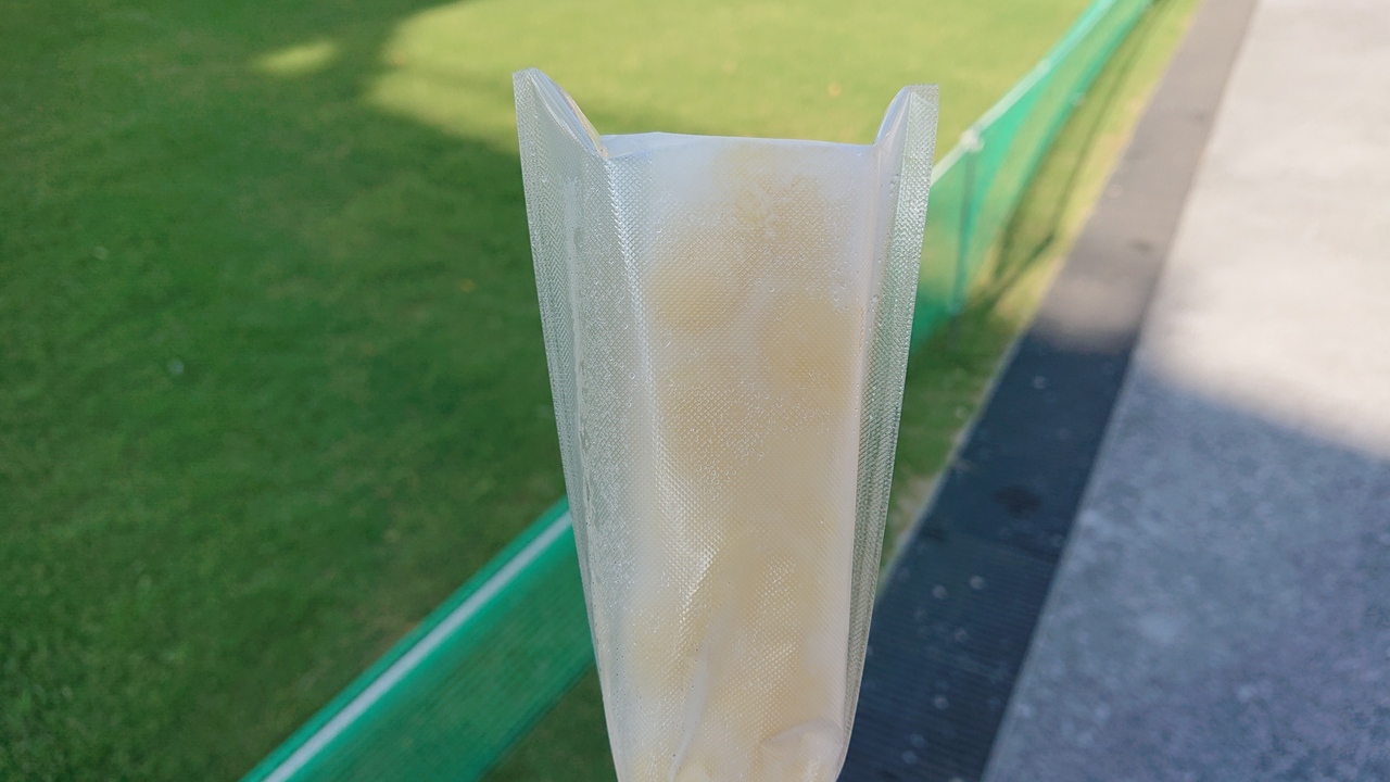 かき氷を食べなくなって訪問しました。すると、昨今の時勢にあわせて、かき氷の提供方式が変更になっていました。具体的には、店内飲食でも、テイクアウト容器で提供されることとなりました。今回は、生いちご味をチョイス。いちごの甘さがおいしかったです。