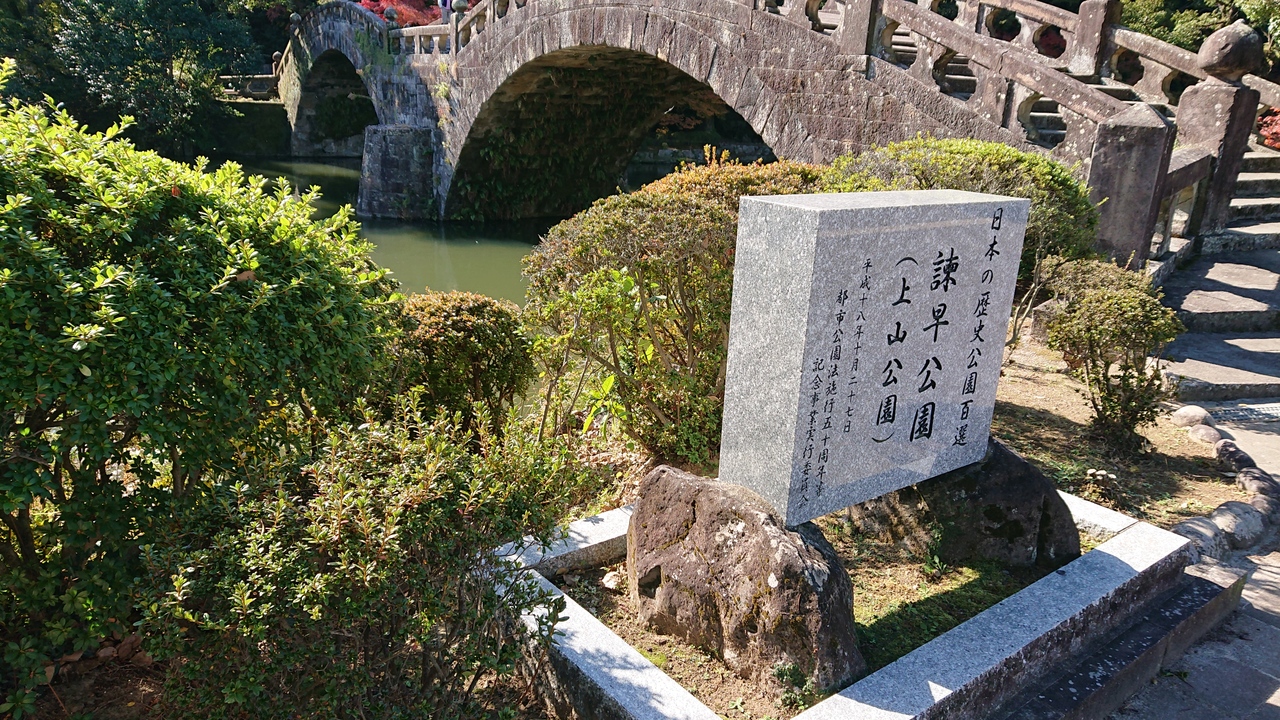 諫早市内の、諫早城跡に造られた公園です。別名として、(上山公園)とも呼ばれているとのことです。11月下旬の休日のお昼頃の時間帯に訪問しました。園内には、来園者が結構いらっしゃり、賑わいが感じられました。思ったより広い公園で、次回訪問する機会があれば、もう少し時間にゆとりを持って訪れたいな、と思いました。