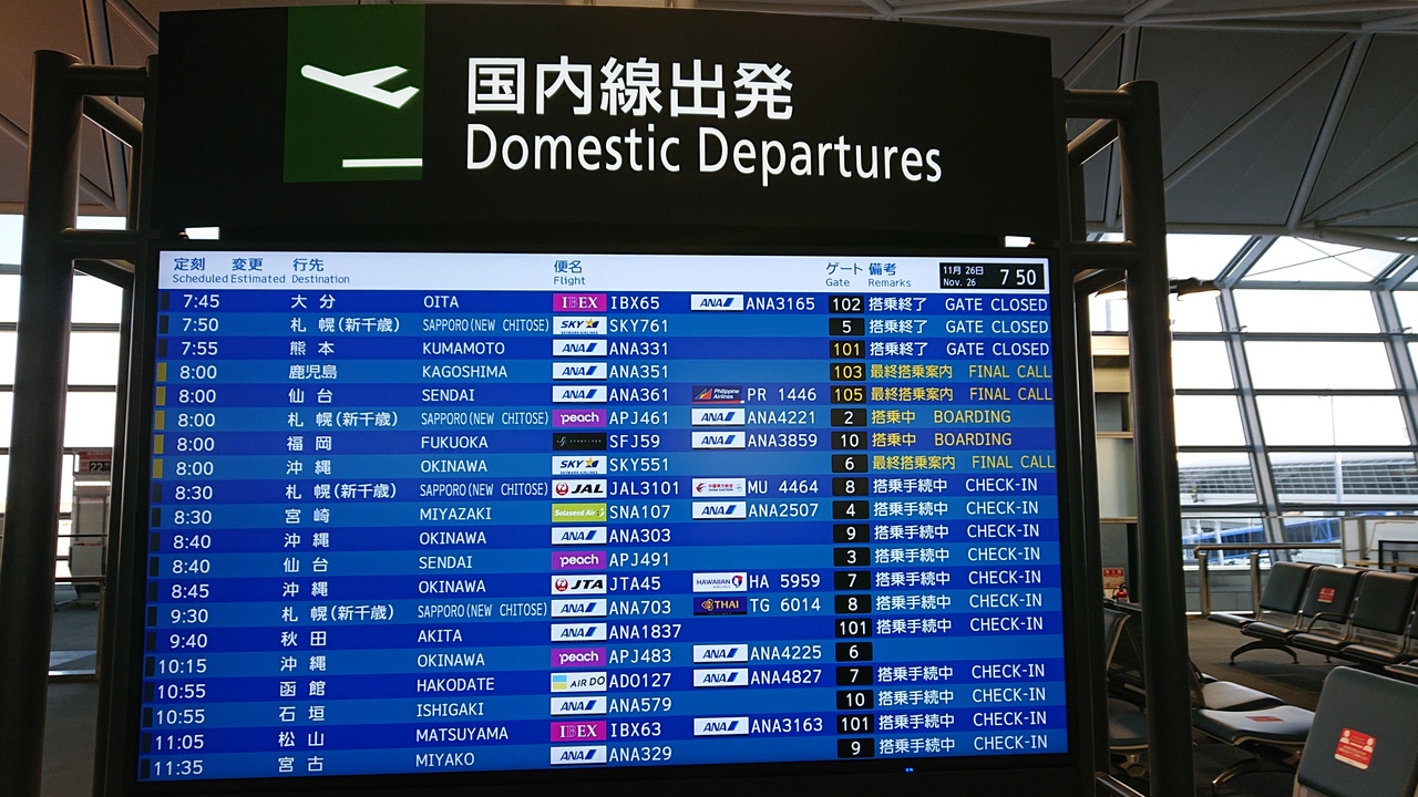 11月下旬の平日朝の時間帯に、福岡空港への便に搭乗するために利用しました。空港内は、ちょうど朝の出発ラッシュの時間帯だったせいもあり、多くの搭乗予定者らしき人で賑わっていました。そのため、保安検査場を通過するのに、結構時間がかかりました。飛行機で移動する際は、時間にゆとりを持つことが必要だと、改めて実感しました。