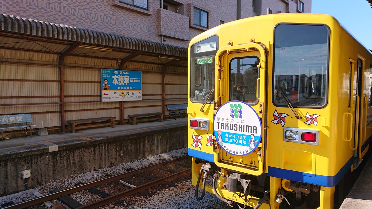 11月下旬の日曜日の12時台に、本諫早駅から諫早駅の区間で区間便に乗車しました。当該区間は、わずか一駅です。しかし、諫早市役所に程近い、本諫早駅と、JRの駅が隣接する諫早駅は、共に発展しており、移動需要が高いようで、区間便が多数設定されています。乗車した列車は、1両での運行でしたが、お客さん全員が余裕をもって着席できていました。