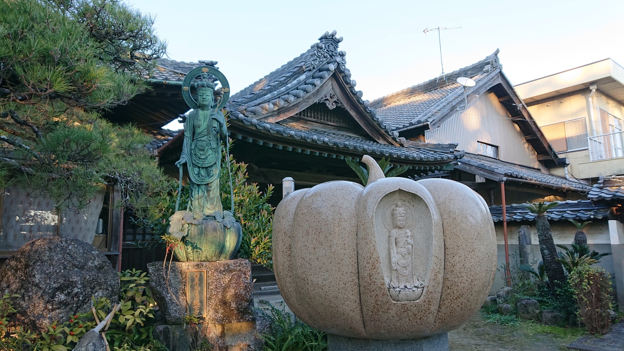 かぼちゃに関する伝承の残るお寺です。12月下旬の午後3時台に訪問しました。境内は空いており、落ち着いた雰囲気の下参拝できました。今回の訪問で特に印象的だったのは、境内側からお寺の門と共に眺めた幡豆の海。お寺の門が、まるで海の額縁のようで、素敵な感じの景観でした。