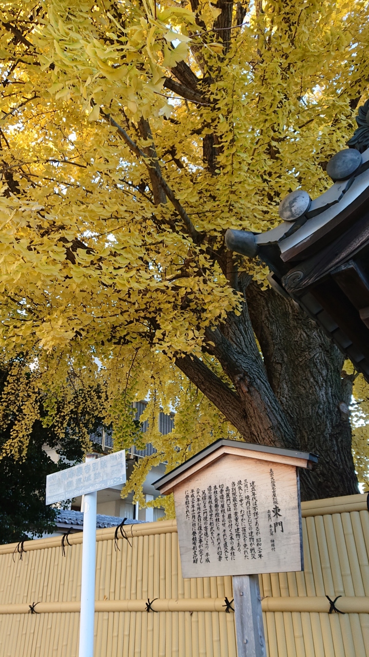12月上旬の日中に訪問しました。今回の訪問で特に印象に残ったのは、東門付近の光景。イチョウが綺麗な黄色に色づいていました。そして、それに日射しがあたった状態も、また素敵でした。また、東門とイチョウの並びにも趣が感じられました。
