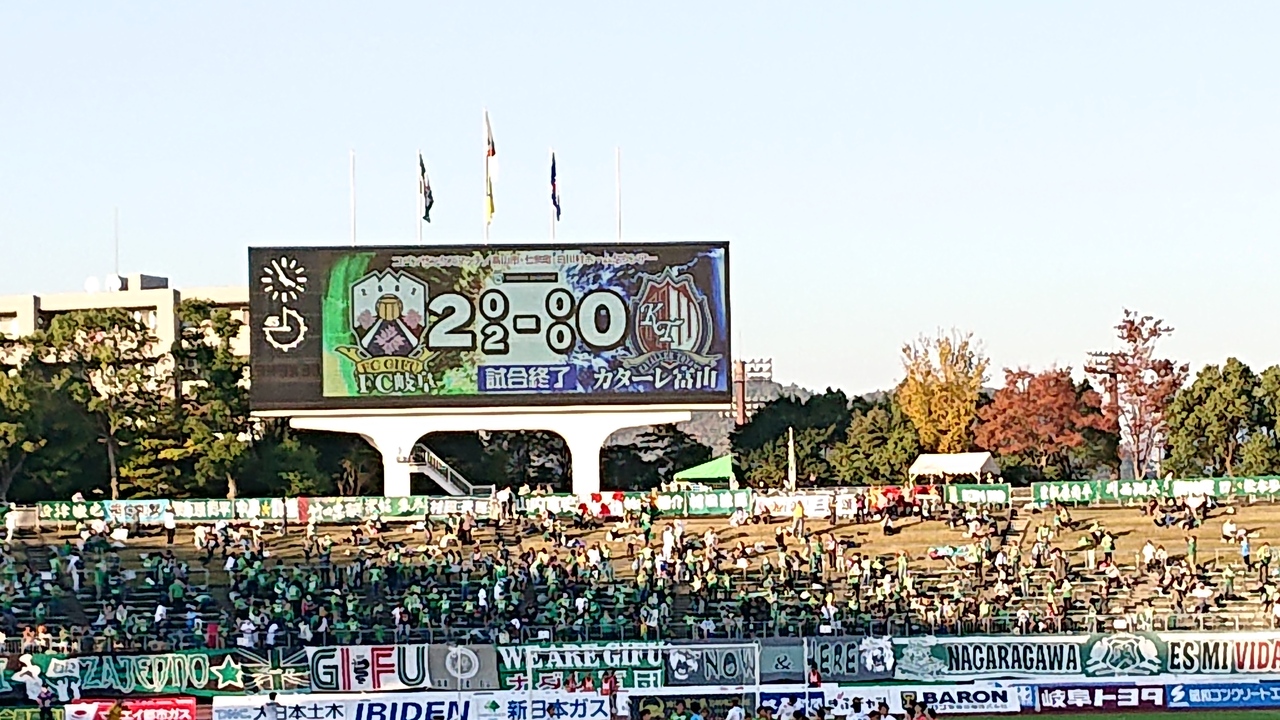 2021年の11月上旬の日曜日の午後に、J2昇格争い生き残りを懸けた、J3リーグ、岐阜対富山を観戦しました。競技場は、J3リーグとしては多い、当該シーズンの岐阜のホームゲーム最高の、5000人弱のお客さんの熱気で溢れていました。それでも、トイレの混雑等も少なく、さすが、設備の整った競技場だと思いました。なお、試合は、結果こそ2対0で岐阜の勝ちでしたが、終盤までスコアレスですすむ熱戦で、見応え十分でした。
