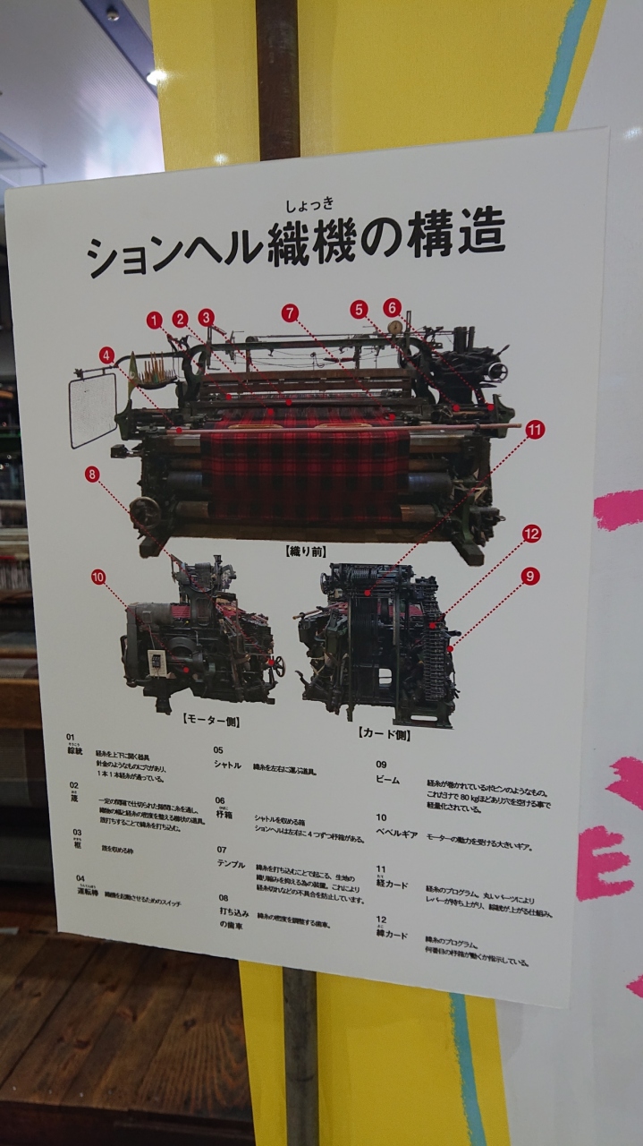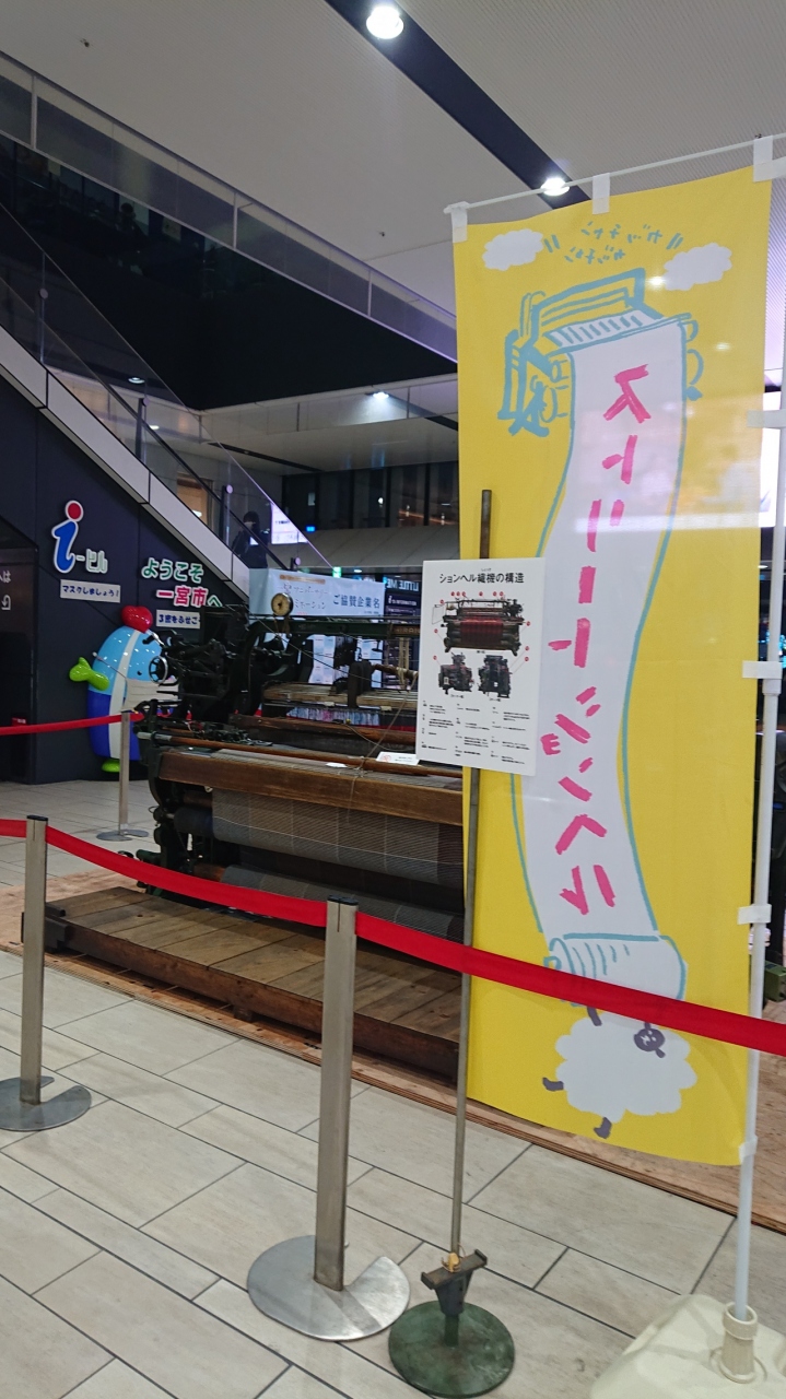 11月初旬に訪問しました。不定期にではありますが、結構な頻度で訪れているこちらのビルですが、今回は、見慣れない展示が一階でなされていました。それは、ションヘル織機の展示でした。織物工業で栄えた一宮らしい展示で、良いな、と感じました。