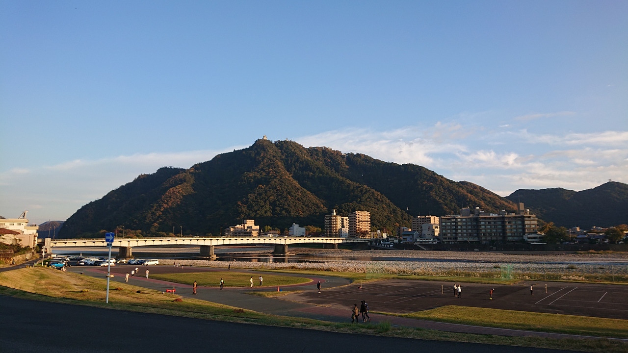 良い天気に恵まれた、11月上旬の週末の午後に、長良川の対岸から、岐阜城を眺めました。当該位置から、実際に眺めると、長良川の水流が、岐阜城にとり、天然のお堀でもあり、要塞でもあったことが、実感でき、戦乱の世にふさわしい立地だと実感しました。