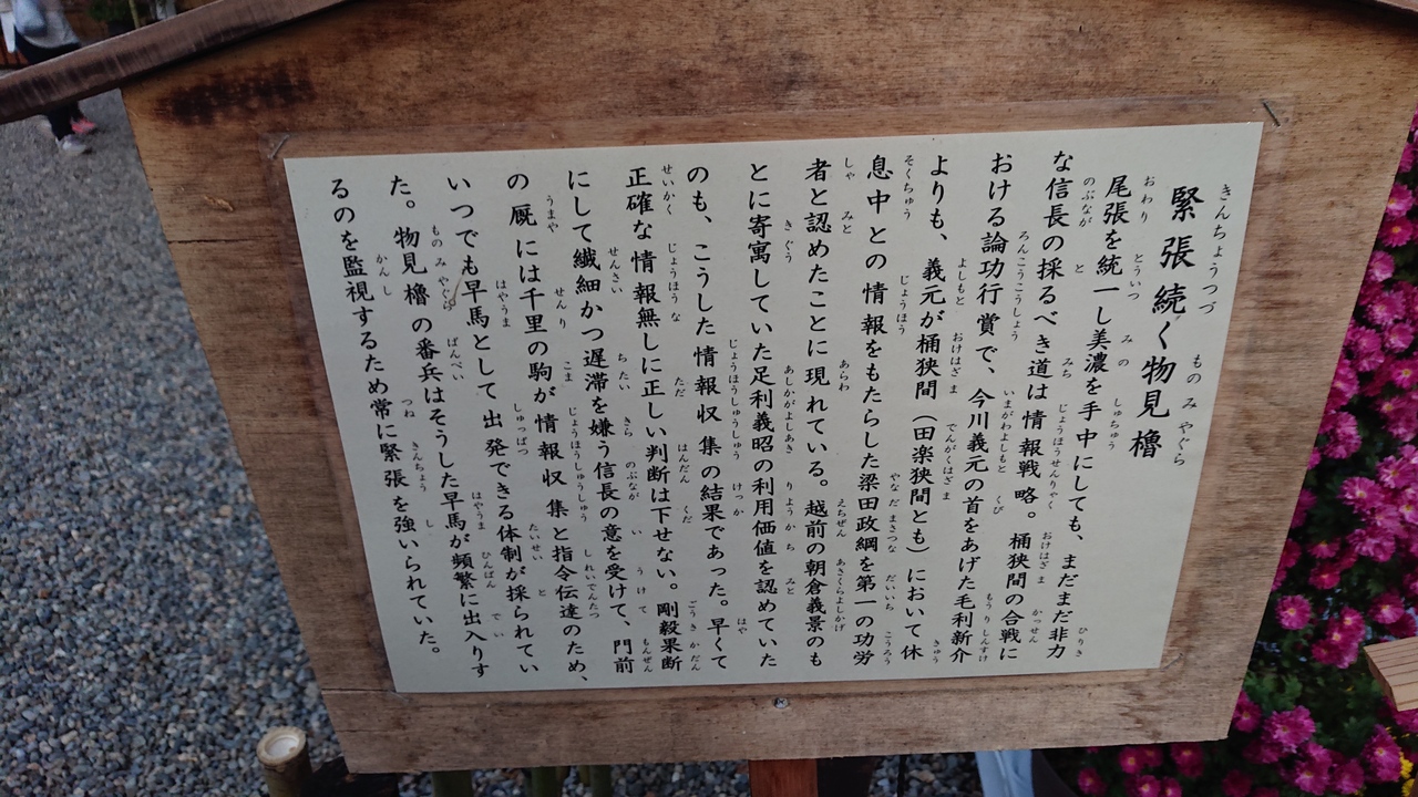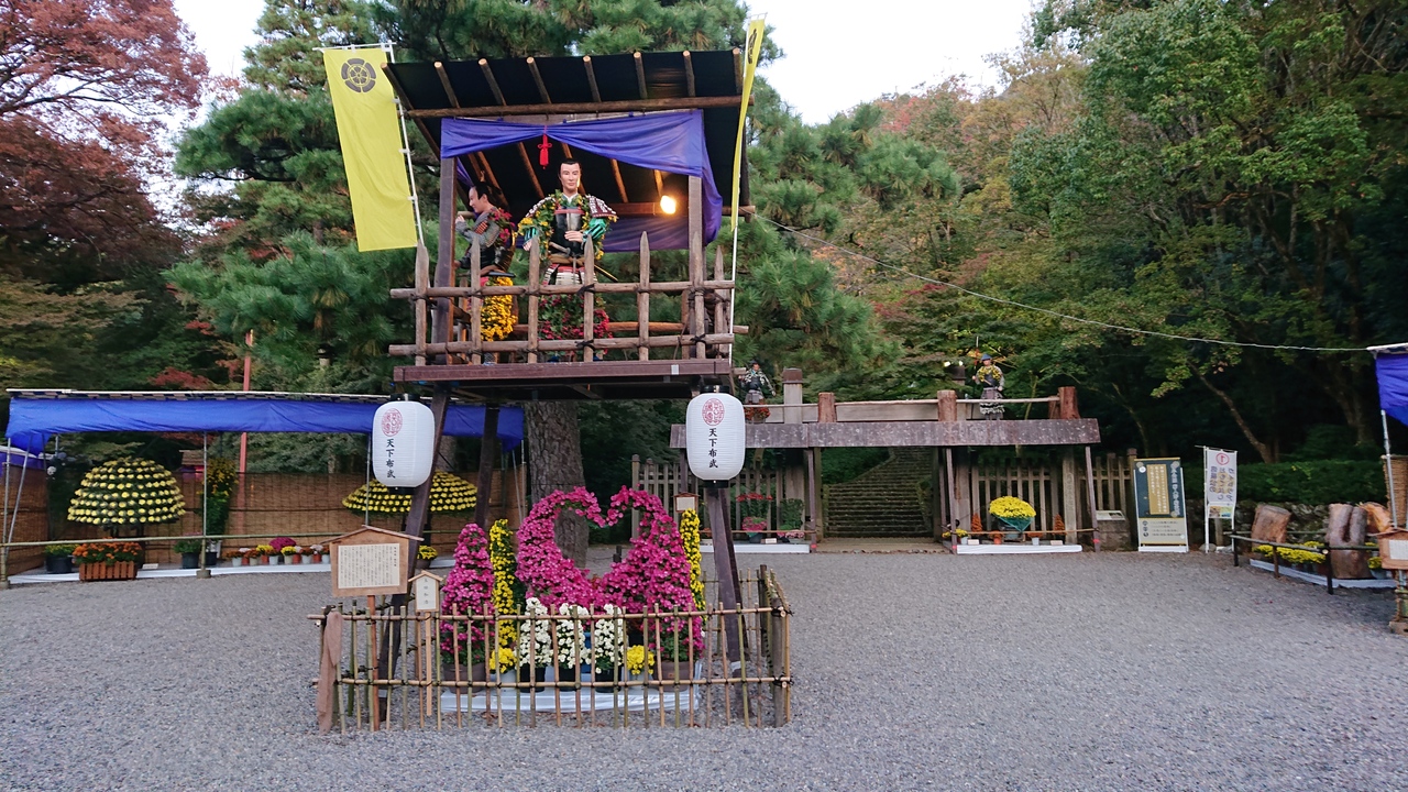 岐阜公園における、秋の恒例行事である「菊人形 菊花展」。11月上旬に岐阜公園を訪問したところ、2021年度も開催されていました。本年度の展示で特に印象に残ったのは、物見櫓を模した展示。信長への又は信長からの情報伝達のため、早馬が多く城内に出入りしたことから、櫓の番兵は重要な役目を果たしていたとのこと。その緊張感を表した展示だということで、岐阜公園にふさわしい内容だな、と感じました。