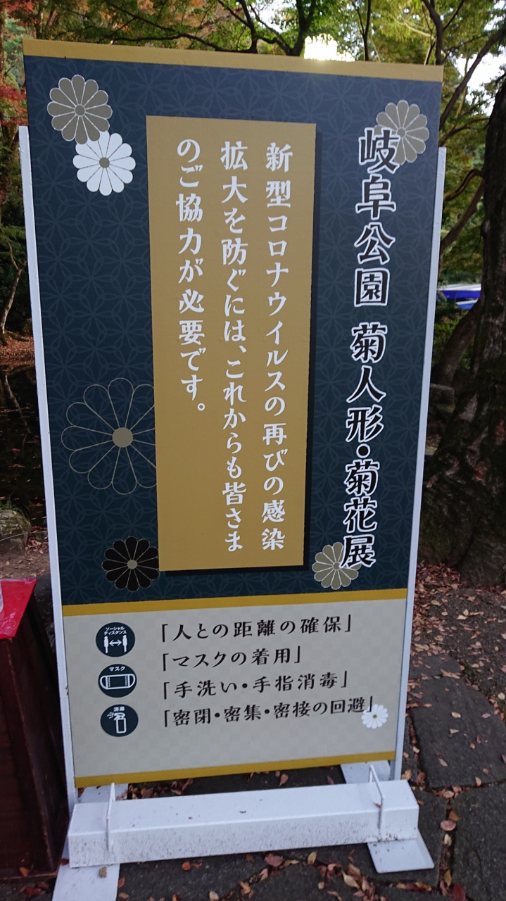 11月上旬の、大変気候の良い1日だった、日曜日の夕方に訪問しました。岐阜公園は、広大な公園なだけに、混雑しているという感じこそありませんでしたが、園内は結構な人手で賑わっていました。なお、菊花展が開催されており、綺麗でした。
