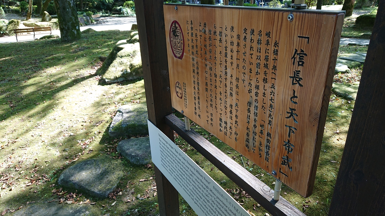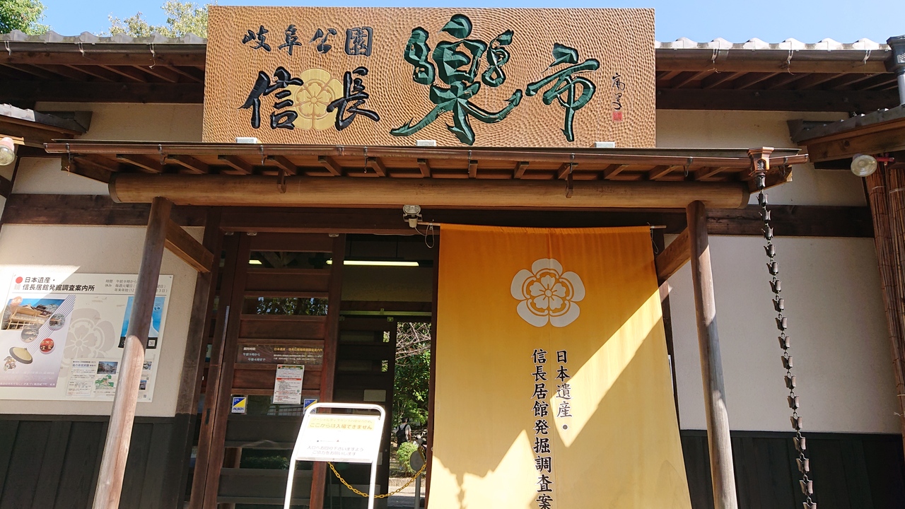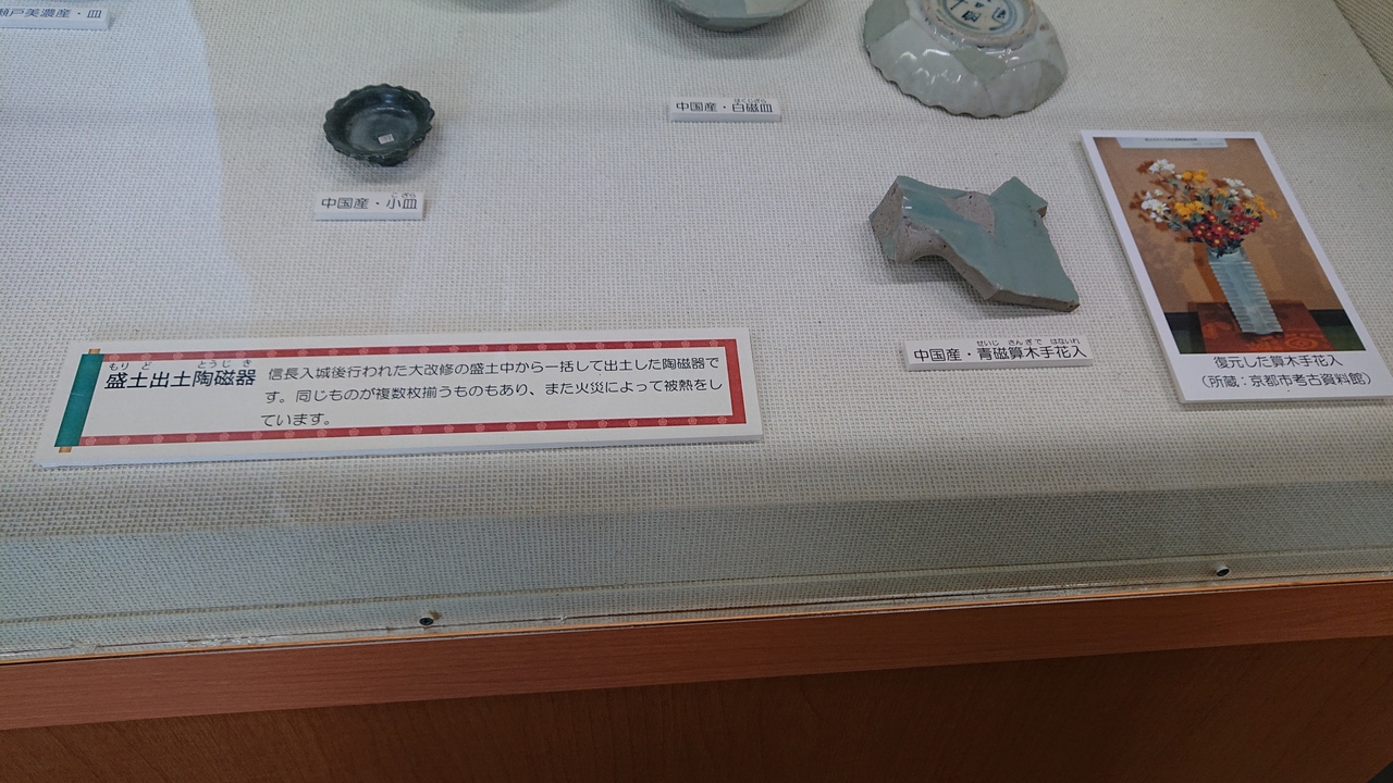織田信長の居館跡の発掘調査についての案内所兼・展示スペースです。関連する、さまざまな展示や掲示がなされていました。今回特に印象に残ったのは、盛土から出土した小皿。中国産ということでしたが、状態が良く、黒色で綺麗でした。