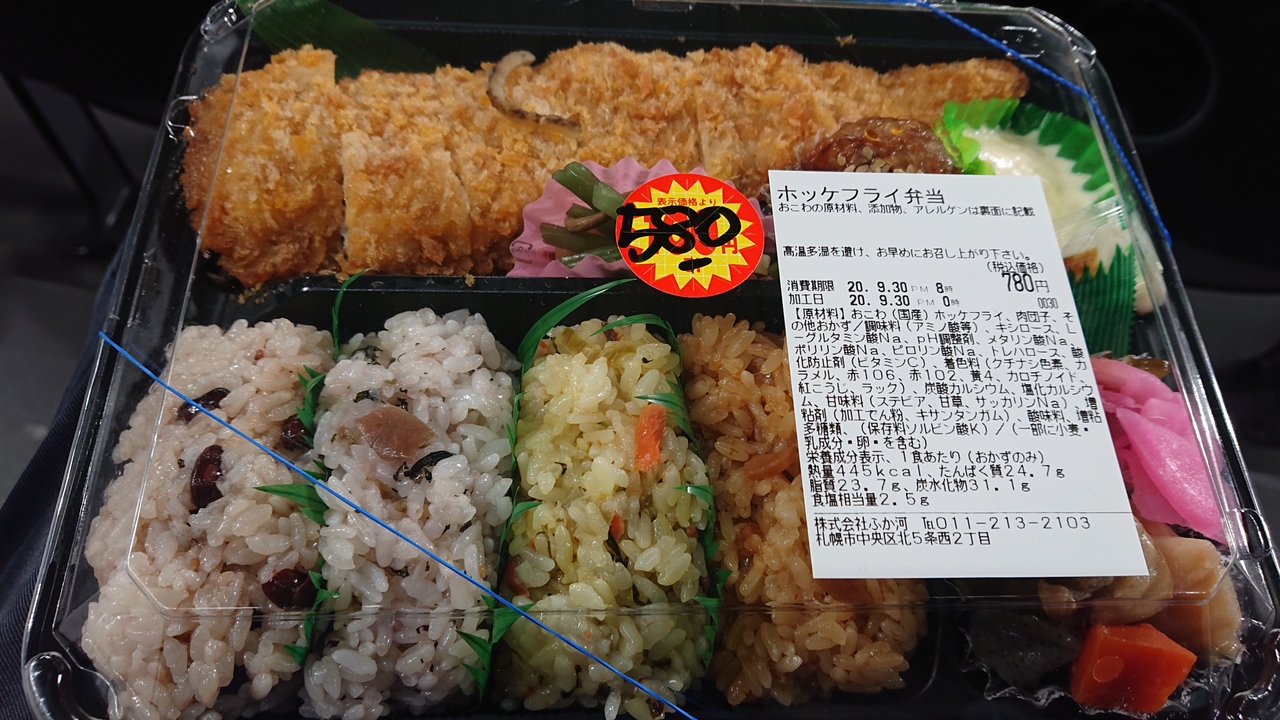 札幌エスタ1階に立地する、おこわ専門店です。夕食になりそうなものを探して、エスタ内を歩いていた際に、偶然見つけて立ち寄りました。購入したのは、ホッケフライ弁当。四種類のおこわが入っており、食べ比べができるのが、楽しかったです。また、おかずのホッケフライは、ボリュームたっぷりで、食べ応えがありました。