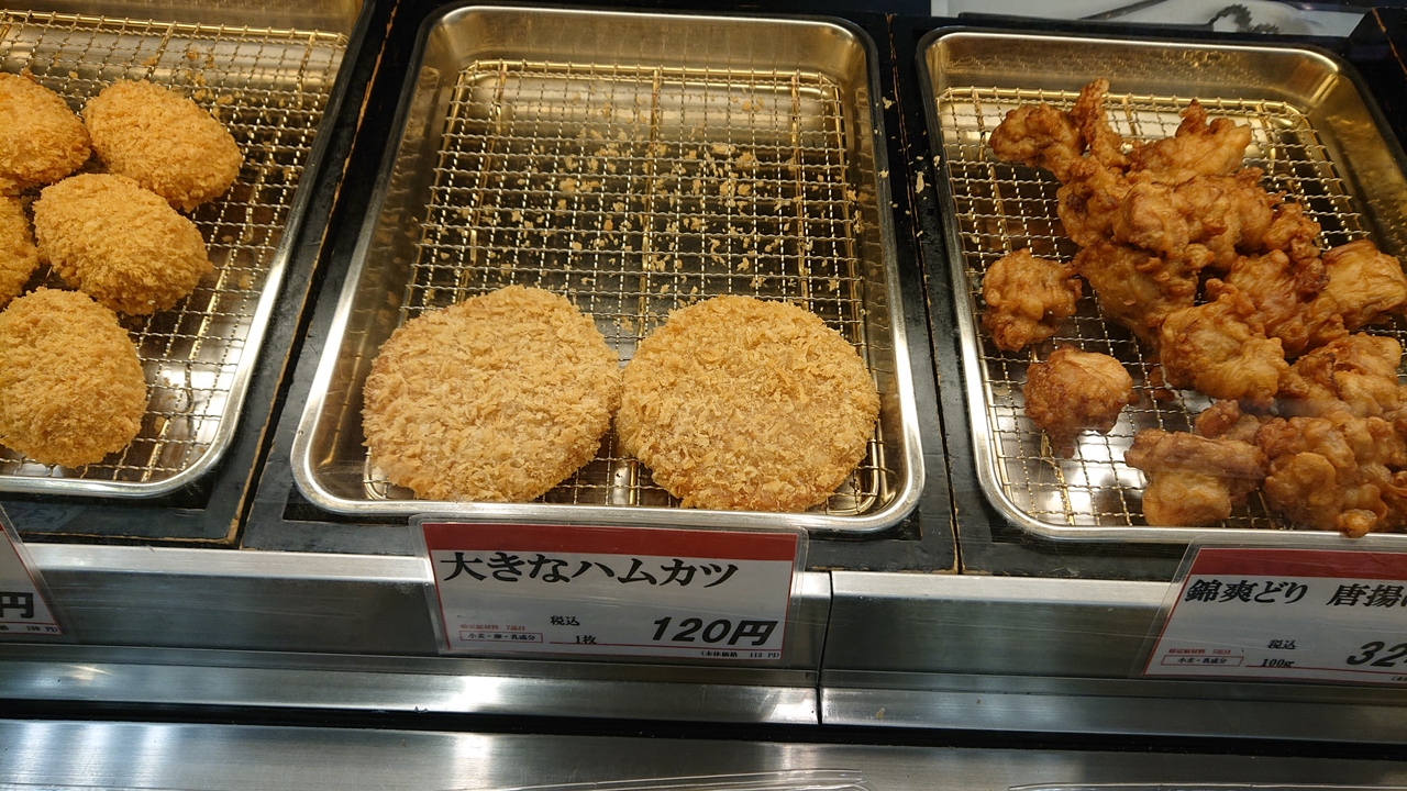 9月上旬の平日のお昼過ぎに訪問しました。ショーケースには、多種類の揚げ物が並んでいました。その中から、大きなハムカツ、を購入しました。お店でパッと見た限りではそれ程大きいとは感じませんでした。しかし、いざ食べようとすると、そのボリューム感に圧倒されました。食べ応えを感じつつ、おいしくいただけました。
