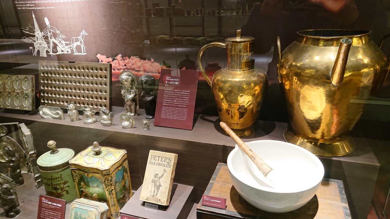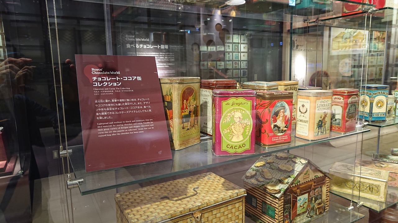 製造工程の一部の見学、チョコレートについて学べる展示、物販、俯瞰すると、概ね以上のような内容で構成されているゾーンです。今回特に印象に残ったのは、チョコレートについて学べる展示。昔のチョコレートの缶や、製造のための型等の展示が面白かったです。