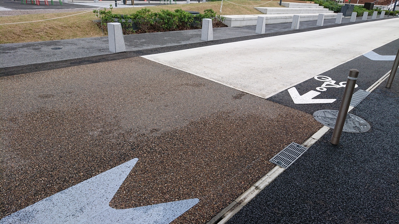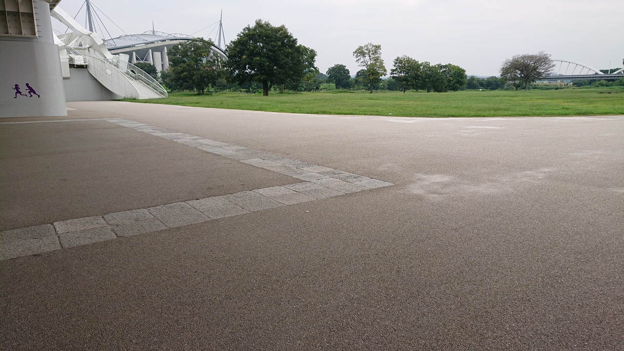 8月下旬のJリーグの試合開催日のお昼過ぎに訪問しました。まだJリーグの試合開始時間まで、5時間以上ある時間でしたので、公園内は、多少の人出があるかな、という程度の状況でした。そんな中、今回印象に残ったのは、豊田大橋に近い側の園内に、グランパスの選手のパネルが設置されていたこと。試合の雰囲気を盛り上げる工夫がなされているな、と感じました。