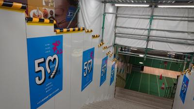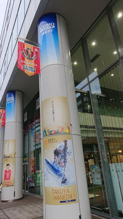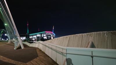 橋上から眺めた、豊田スタジアムの、オリンピックライトアップが綺麗でした