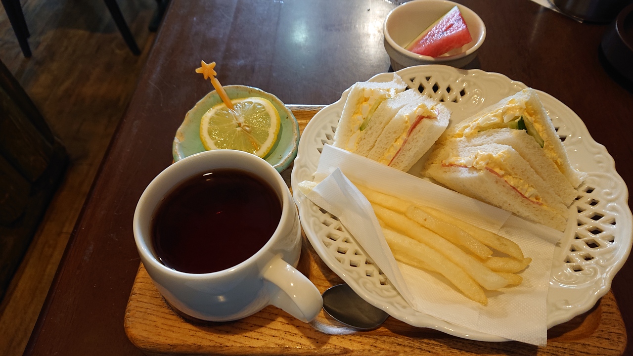 名鉄甚目寺駅近くに立地するカフェです。サンドイッチやハンバーガーに力を入れておられます。午前中に訪問し、モーニングセットの中から、サンドイッチ付きのものを注文しました。サンドイッチは卵サラダをベースにしつつ、野菜やハムも添えられたミックスサンドで、おいしくいただけました。