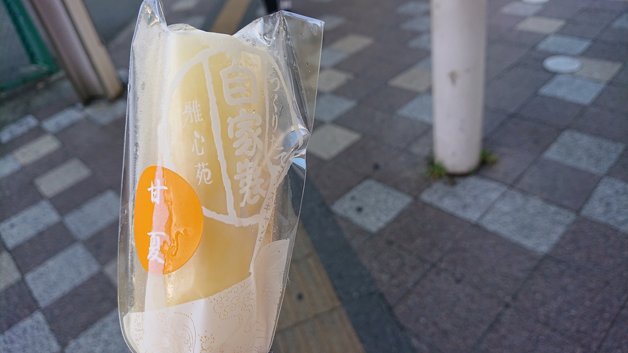 沼津駅前の商業施設イーラDEに入居する和菓子屋さんです。、まだまだ暑さの残る、9月上旬の日中に訪問しました。涼を得たいと思い、アイス・キャンディー(甘夏味)を購入。甘夏の酸味がうまく生かされており、おいしくいただけました。