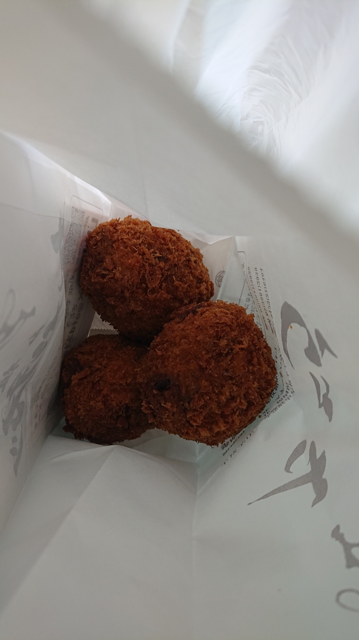 週末のお昼ごろに訪問しました。お客さんで店頭は賑わっており、注文を決めてから、実際に注文するまでに、少し待ちました。そして、揚げ物数点を購入しました。今回特に印象に残ったのは、和牛入りコロッケ。そのまま食べても、提供されたソースをかけて食べても、それぞれに味わいがあり、おいしくいただけました。