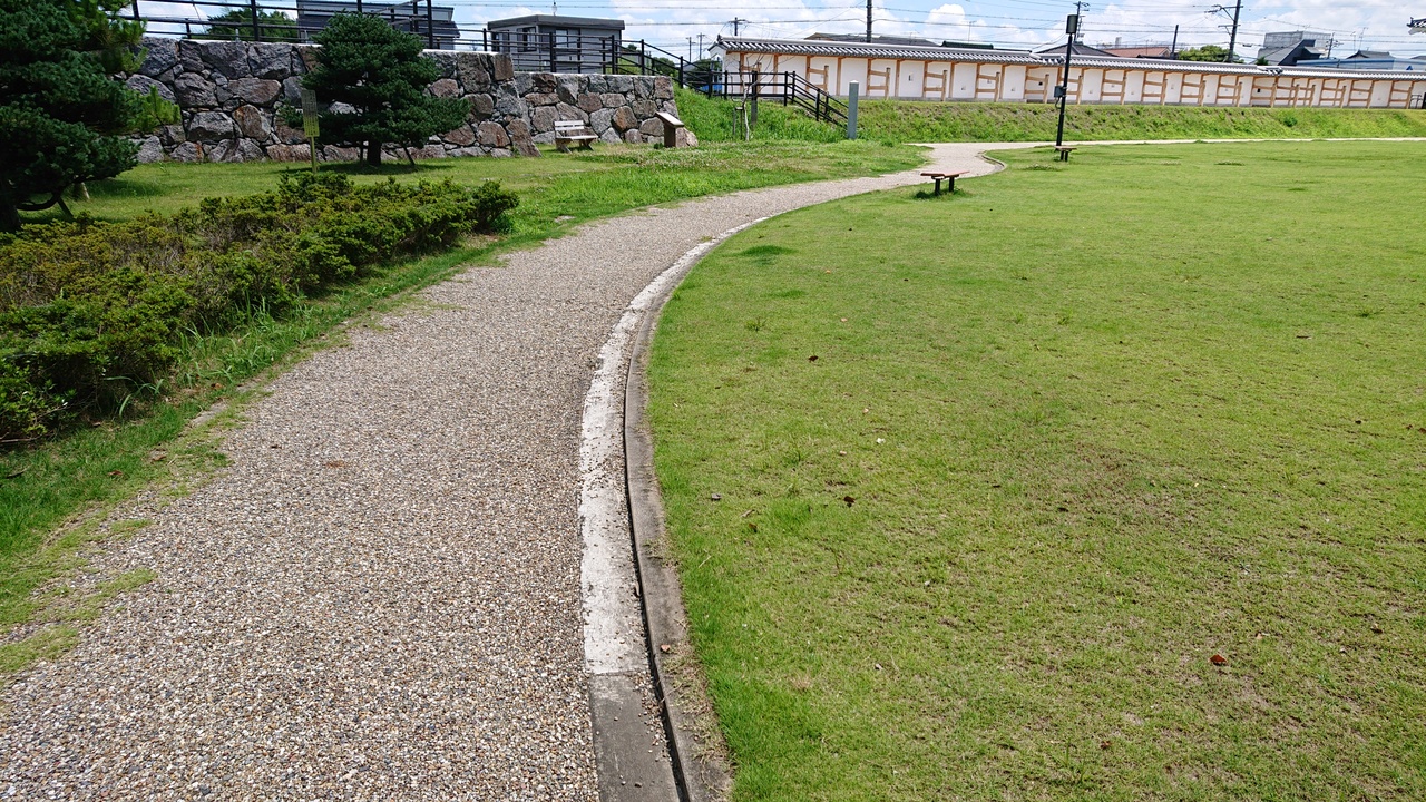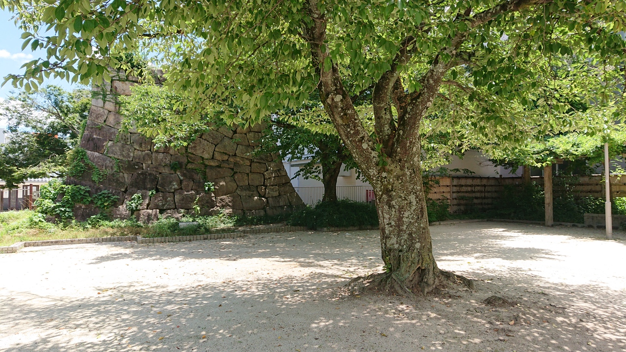 拳母城跡の公園です。このことから、史跡でもあることは間違いありません。しかし、園内に桜の木が植えられており、それが桜の開花時期には綺麗であることから、現在では、桜の名所としても認識されています。7月中旬に訪問したところ、その桜の木の葉が木陰をつくっており、それが印象的でした。
